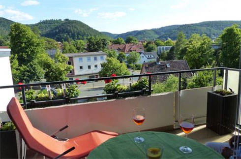 Unsere Fewos liegen im 2. Obergeschoss einer gepflegten Wohnanlage. Sie sind mit 55 qm und 33qm sehr geräumig und bietet 2-6 Personen Platz. Auf den beiden überdachten Sonnenbalkons können Sie den Ausblick auf den Burgberg genießen, grillen oder sich auf unseren Liegen sonnen. Im gemütlichen Wohnzimmer der Whg. Nr.1 befindet sich die Doppelschlafcouch neben Fernsehsessel und dem Essplatz. Das Schlafzimmer verfügt über 2 Einzelbetten und einem großen Kleiderschrank. Weiterhin gibt es 1 Badezimmer mit Wanne/Dusche und eine komplett ausgestattete Küche mit Geschirrspüler, Ceranfeld, Kühlschrank mit Gefrierfach usw.