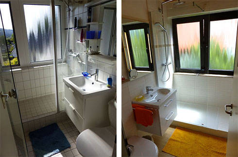 Die kleinere Fewo Nr.2 für 2 Personen verfügt ebenfalls über einen Fernsehsessel und eine Komfortdoppelschlafcouch, ein Badezimmer mit Dusche, großem Sonnenbalkon mit Tisch und Stühlen und eine Pantryküche mit Ceranfeld, Kühlschrank, Kaffeemaschine usw. Beide Wohnungen können getrennt oder zusammen gemietet werden. Whg. 1 für 2-4 Personen, Whg. 2 für 2 Personen. Einkaufsmöglichkeiten und Frühstückscafe sind in unmittelbarer Nähe.