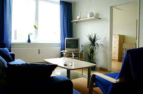 Die liebevoll eingerichteten, 50 qm großen 2-Zimmer-Apartments eignen sich für einen kurzen Aufenthalt aus privaten oder geschäftlichen Gründen, sowie für Langzeitaufenthalte für 1 - 4 Personen. Das Wohnzimmer lädt geradezu ein, nach einem anstrengenden Tag in der Stadt oder im Büro den Abend in aller Ruhe ausklingen zu lassen. Ob nun allein oder mit Freunden, bei einer guten Flasche Wein oder einem schönen Essen zu zweit, es wird Ihnen an nichts fehlen. Das Wohnzimmer ist mit einem großen, gemütlichen Schlafsofa ausgestattet (Liegefläche 1,75 x 2,00 m), sowie einer Essecke für 4 Personen, Kabel-TV, Radio, CD- und DVD-Player. Ein nicht unerheblicher Vorteil gegenüber einem Hotel, gerade für Langzeitaufenthalte, ist die neue, voll ausgestattete Küche mit praktischer Frühstücksecke, Kühlschrank, großem Gefrierfach, Mikrowelle, Geschirrspüler, Kaffeemaschine, Wasserkocher, Toaster, etc. Auch im neu sanierten Duschbad, sowie dem Schlafzimmer mit großzügigem Doppelbett (1,60 x 2,00 m), Kabel-TV und Wecker brauchen Sie nicht auf den gewohnten Bettwäsche- und Handtuchservice zu verzichten.