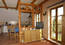 In der unteren Etage befindet sich ein Frühstücksraum für bis zu 24 Personen. Ganz gemütlich wird es dort, wenn der offene Kamin beheizt wird.