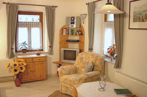 Unsere gemütlich eingerichtete Nichtraucher-Ferienwohnung für 2 - 3 Personen liegt im Stadtkern von Königstein inmitten der Sächsischen Schweiz. Sie ist mit einem kombinierten Wohn-/Schlafraum mit Doppelbett, Sitzecke, TV, Stereoanlage, Küche und einem Bad mit Dusche und WC ausgestattet. Ein Pkw-Stellplatz ist vorhanden. Die Berge des Elbsandsteingebirges liegen bei uns praktisch vor der Haustür. Pfaffenstein, Lilienstein, Papststein und einige andere können Sie erwandern. Der Elbradweg ist nur 200 m von uns entfernt. Fahrräder können bei uns ausgeliehen werden. Sie können aber auch Radtouren oder Tagesausflüge nach Dresden, Meißen oder in die Tschechische Republik machen. Unser erster Tipp: Ein Besuch der Festung Königstein.