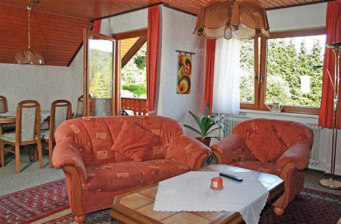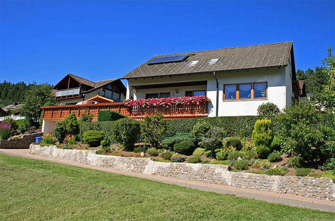 Unser Haus befindet sich in sonniger, ruhiger Südhanglage und in Waldnähe. Wir bieten Ihnen eine komplett eingerichtete, 80 qm große 3-Zimmer-Wohnung. Sie hat 2 separate Schlafräume (Ersatzliege und Kinderbett vorhanden), einen gemütlichen Wohnraum mit Kabel TV und Radio, Küche, Bad/WC und einen überdachten Balkon. Bei Ankunft sind die Betten bezogen. Hand- und Badetücher sind vorhanden.