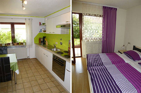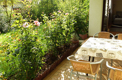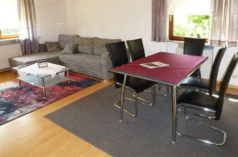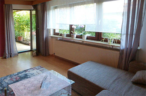 Unsere großzügige Nichtraucher-Ferienwohnung mit ca. 73 qm liegt sehr ruhig am Ende einer Sackgasse – mit separatem Eingang, sonniger Terrasse, ansprechender Einrichtung sowie kostenlosem WLAN/DSL. Es gibt ein separates Schlafzimmer mit Doppelbett, ein Wohnzimmer mit Schlafcouch und Essplatz für 4 Personen, eine Küche mit Esstisch für 4 Personen sowie ein Badezimmer mit Dusche, Badewanne und 2 Waschbecken.