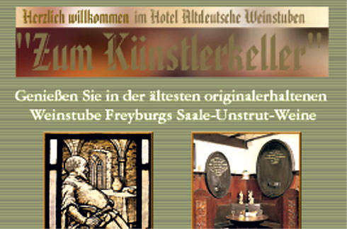 Das Hotel Zum Künstlerkeller befindet sich im Stadtzentrum von Freyburg und dennoch in ruhiger Lage. Unsere 25 Doppel- und 7 Einzelzimmer verfügen über DU/WC, einem Schreibtisch, Telefon, Fernseher und Radio. Für Tagungen gibt es zwei Konferenzräume. In unserer Weindiele finden niveauvolle Veranstaltungen statt, die dem Namen des Hauses gerecht werden. Speisen können Sie in unserem Restaurant und im Sommer auch im lauschigen Innenhof. Ein ganz besonderes Erlebnis ist der hauseigene Weinkeller. Genießen Sie hier den Geruch des alten, urigen Gewölbes, das Kerzenlicht sowie traditionelles Essen und die Weine von Saale und Unstrut! Ob geschäftlich oder privat, für verschiedenste Anlässe und Festlichkeiten oder zum Entspannen, finden Sie bei uns ein stilvolles und vielfältiges Angebot.